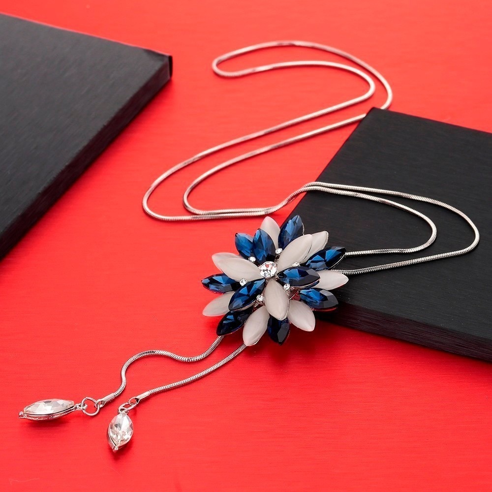 Snowflake Pink Zircon Long Necklace Sweater Chain Fine Metal Cute Crystal Rhinestone Opal Flower Pendant Necklaces Adjustable