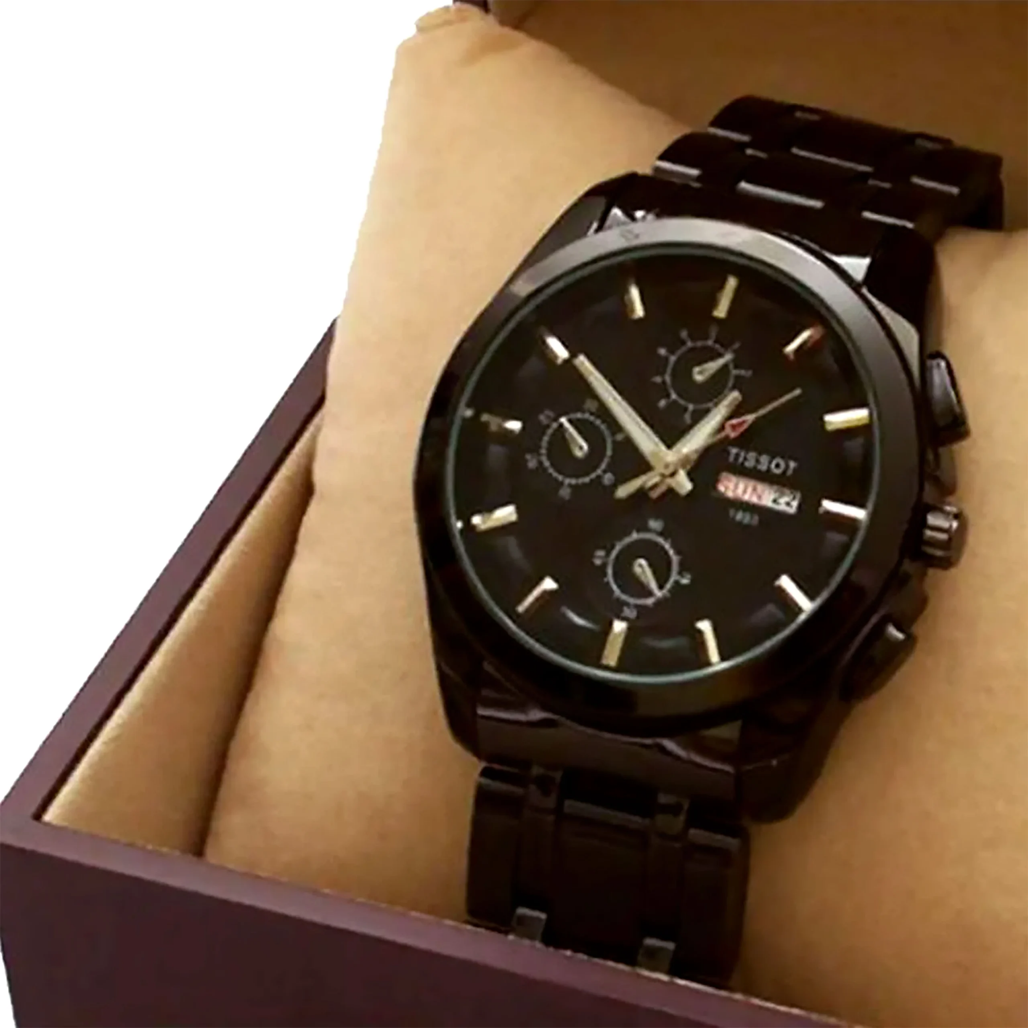 Product details of Analog Wrist chain Stainless Steel Watch Watch - BlackProductType: Analog WatchGender: MenDial color: same picDate View : YesBand Material Type: Stainless SteelCase Material: AlloyCase Shape: RoundBand Size: Men’sStandardDisplay Type: AnalogCondition: Brand New