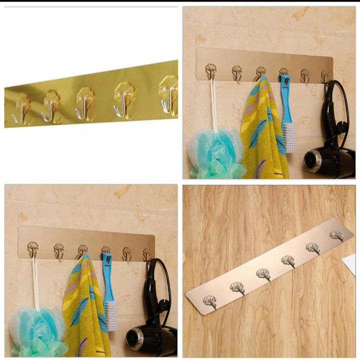 1 Pcs Self-Adhesive Strong Transparent Suction Cup Hanger Kitchen Bathroom Multi-Purpose 6 Hook Seamless Super Glue Hook - Gold