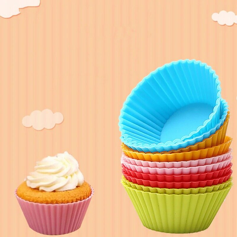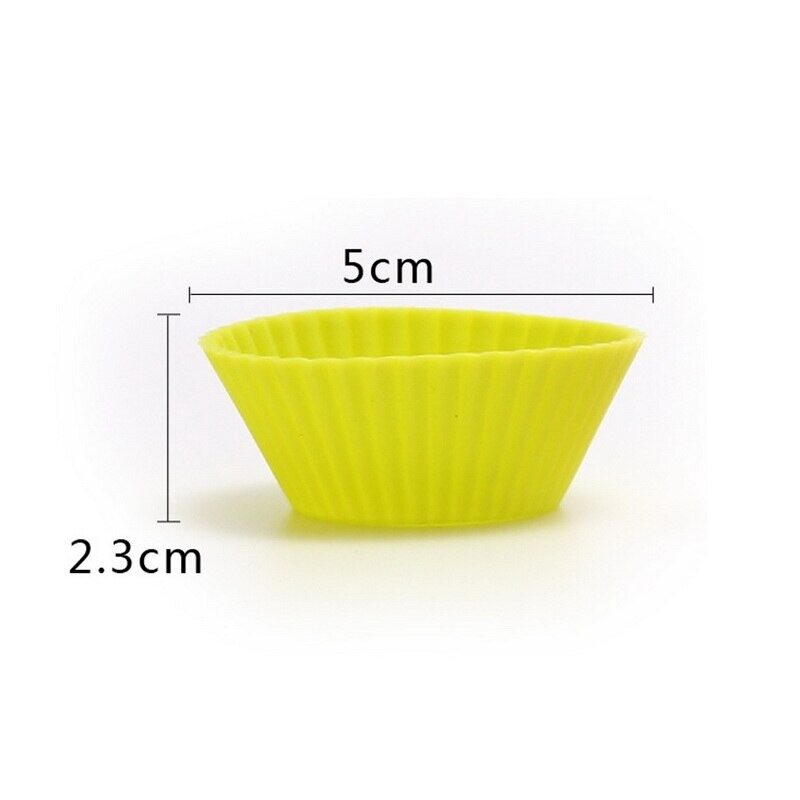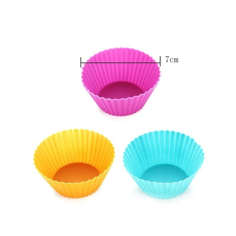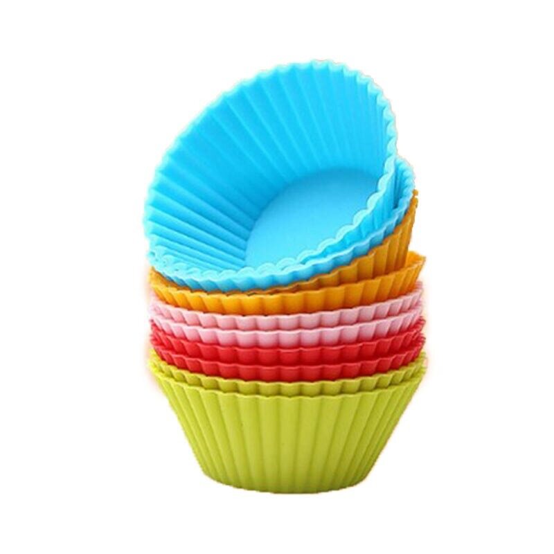 10 pcs Baking Cup Liner Molds Round Shape Silicone Cupcake Mold Maker Tray DIY Cake Decorating ToolsSize: 50 * 23mm, total of 12 pieces;Color: red, blue, pink, green, orange mix random color;Material: silicone;Features:1. The baking cups are made of 100% food grade silicone, approved by FDA, bpa free. Eco-friendly, non-toxic, flexible, reusable and durable.2. Silicone baking molds are naturally nonstick to make popping out perfectly shaped baked treats a breeze.3. The nonstick, flawless and odor-resistant feature ensures that the silicone cupcake liners are very easy to clean.Applicable: suitable for baking cupcake, muffin cake, making jam, etc.The package includes: 12 pcs silicone cake mold.