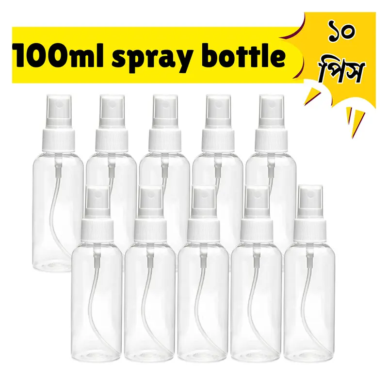 100ml Transparent Spray Bottle (Set of 10) – perfect for perfumes, sanitizers, toners and travel-size cosmetics, designed for clean, even mist every time.