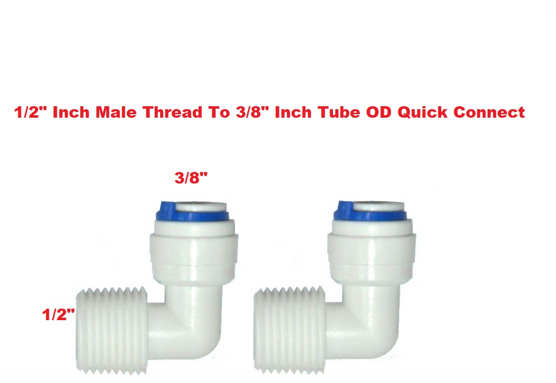 1/2 Inch Male Thread To 3/8 Inch Tube OD Quick Connect ( Elbow ) Water Purifiers Tube Fittings Push in to Connector Filter Tubing Hose Pipe Joint for RO Reverse Osmosis System White (Pack Of 2pcs)