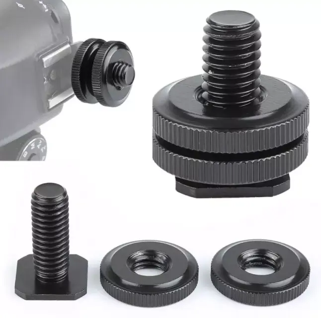 1/4 Inch Double Nut Cold Shoe Tripod Mount to Flash Hot Shoe Screw Adapter for GoPro Hero 5 Action DSLR Camera Photo Studio Black