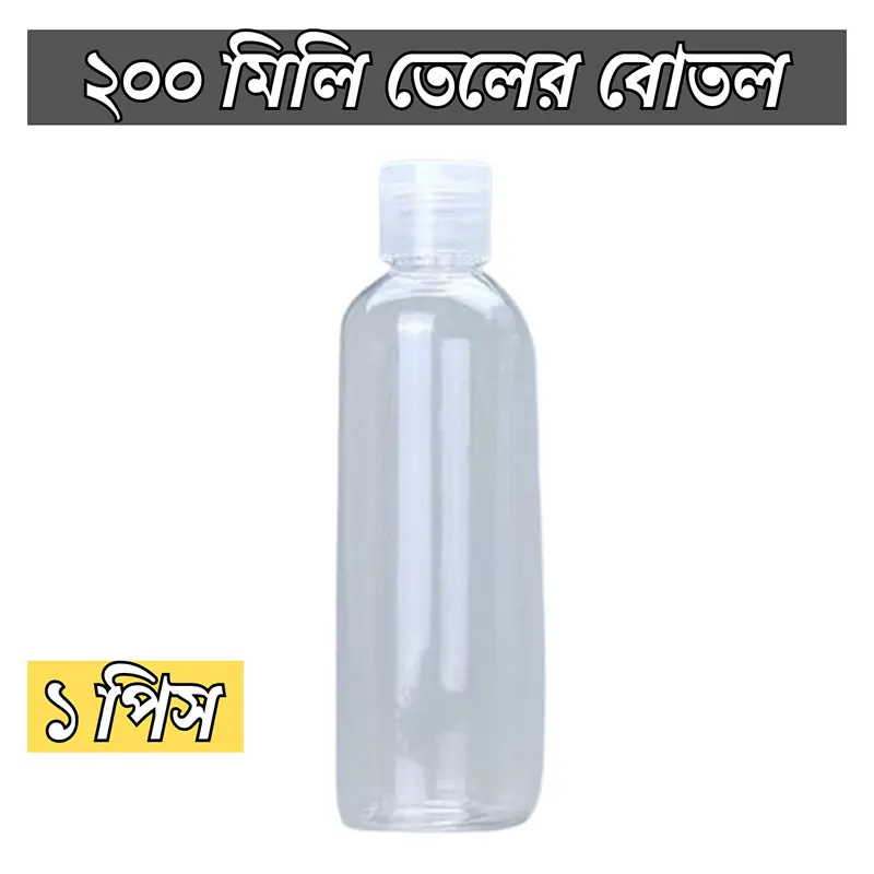 Plastic Oil Bottle Tiptop Cap 200Ml Transparent- 1 pcs is a set of clear, refillable PET plastic bottles designed for safely storing and dispensing various oils and liquid products. Each bottle has a 100 ml capacity and comes with a secure flip (tiptop) cap that helps prevent leakage and makes pouring or applying oil easy and controlled.