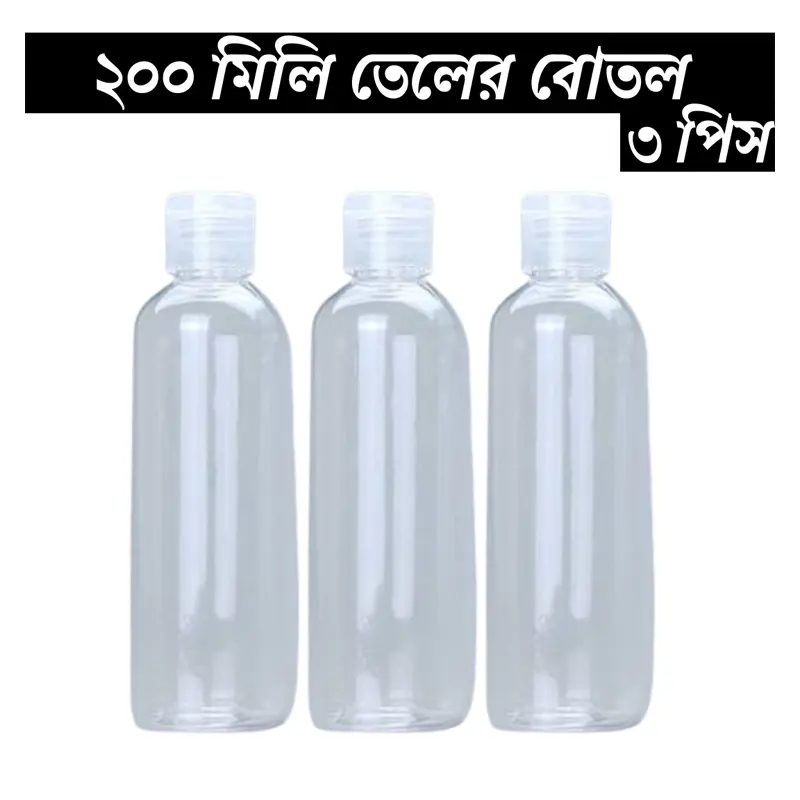 Plastic Oil Bottle Tiptop Cap 200Ml Transparent- 3 pcs is a set of clear, refillable PET plastic bottles designed for safely storing and dispensing various oils and liquid products. Each bottle has a 100 ml capacity and comes with a secure flip (tiptop) cap that helps prevent leakage and makes pouring or applying oil easy and controlled.