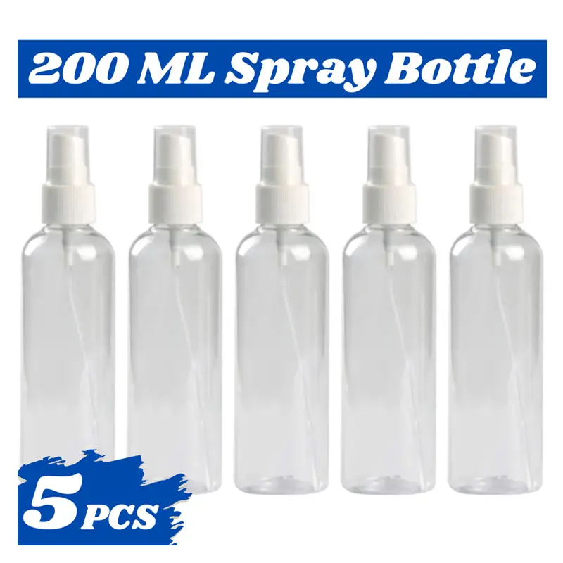 200ml Spray bottle Transparent plastic bottle- 5 pcs – perfect for perfumes, sanitizers, toners and travel-size cosmetics, designed for clean, even mist every time.