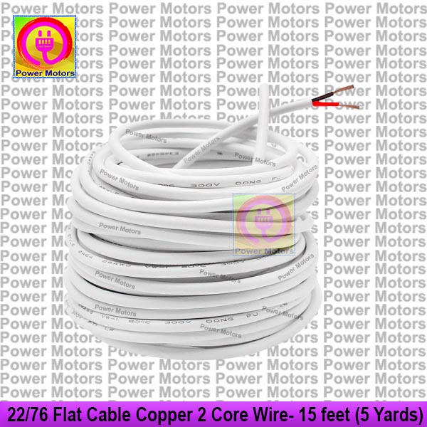 - 22/76 Flat Cable Copper 2 Core Wire- 15 feet (5 Yards) Use For Multiplug Extension Cable, Table Fan Cable, Ceiling Fan Cable, Pendant Light Cable, 1 Horse Water Pump and Others