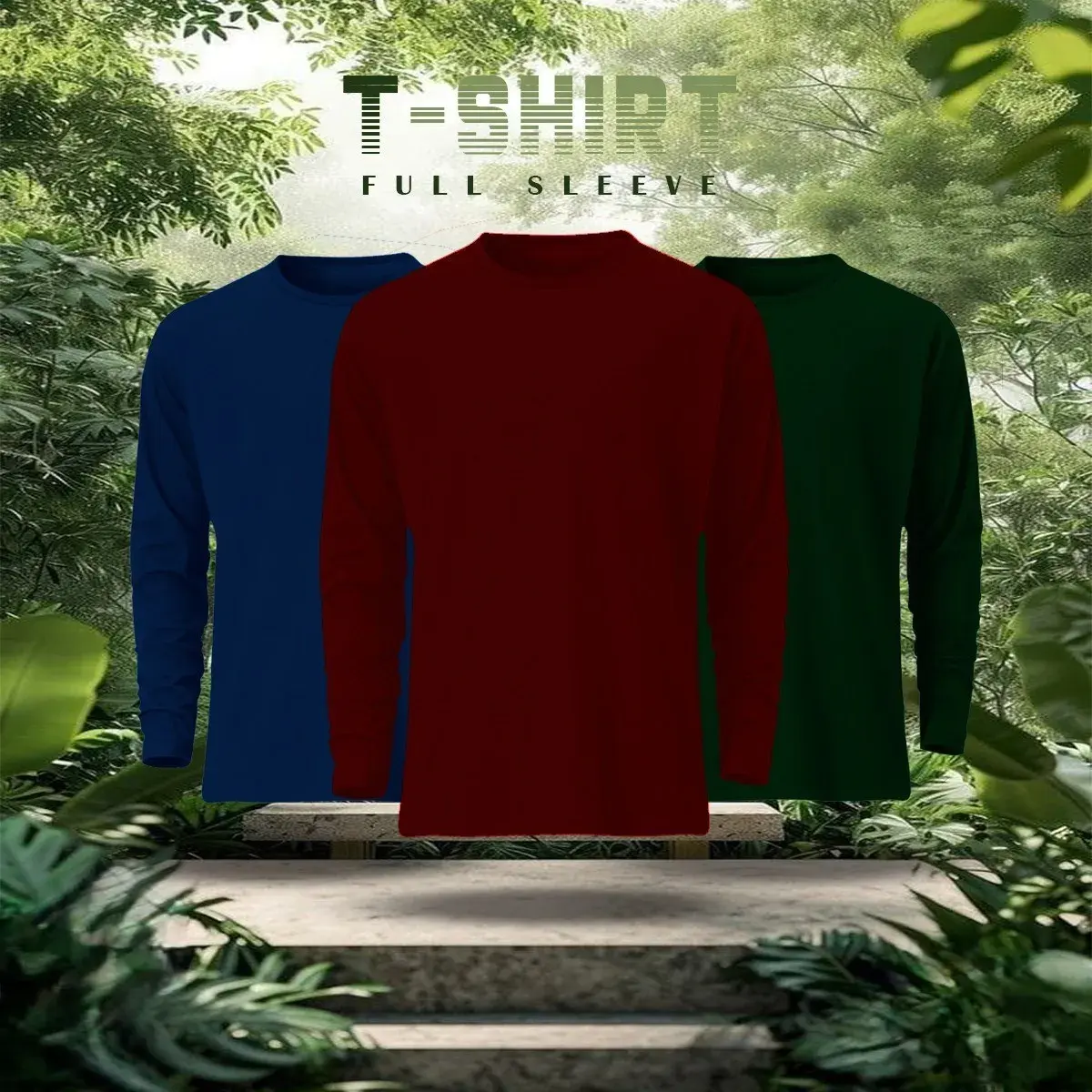 3 pcs Full Sleeve Solid T-Shirt Combo