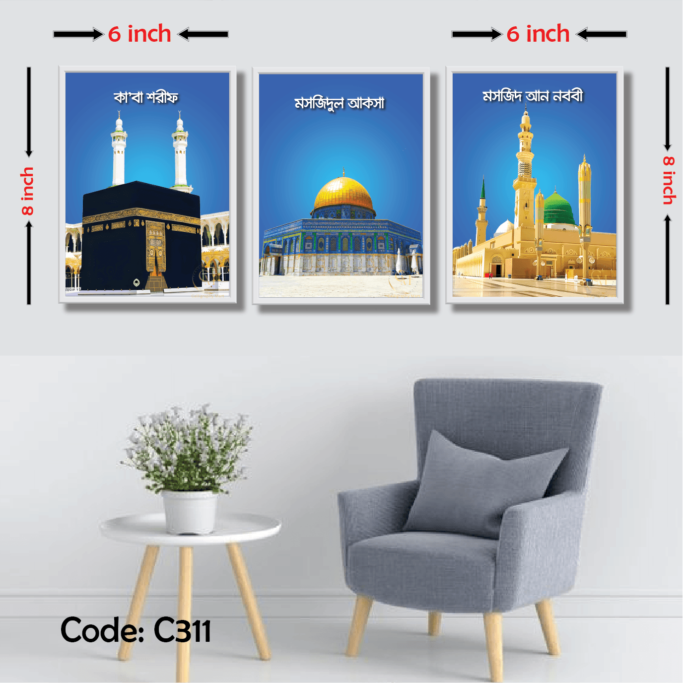 3 pcs Makka, Madina, Al aqsa Combo Wallmate set for Home Decoration. Wall Decoration for Home and Office Multicolor