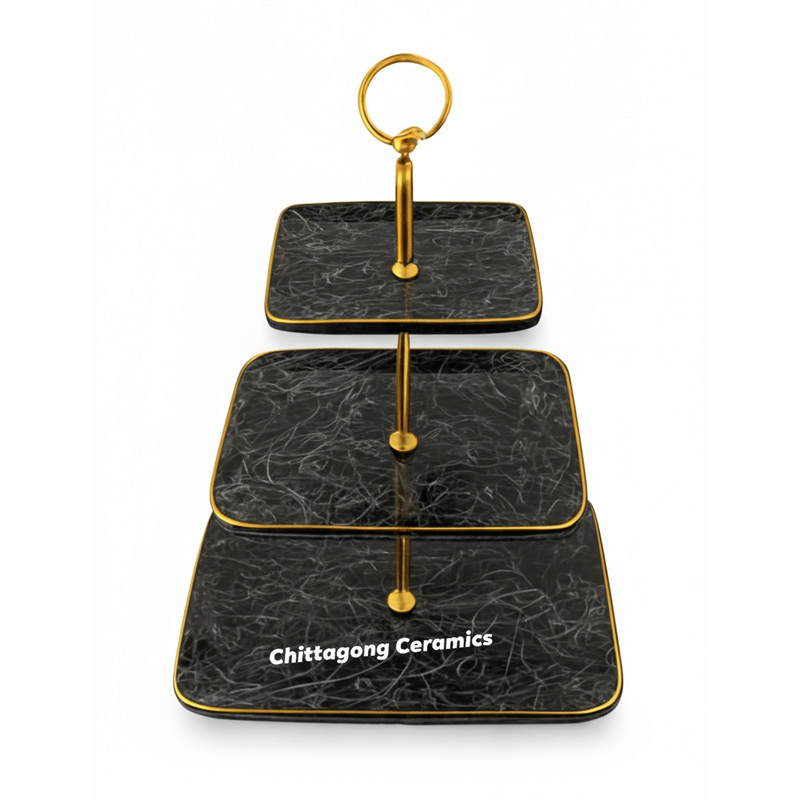 This beautiful 3-tier cupcake stands are made of porcelain and comes in a luxury round shape. The elegantly made handle allows you to conveniently carry the dessert stand and place it in front of your guests.