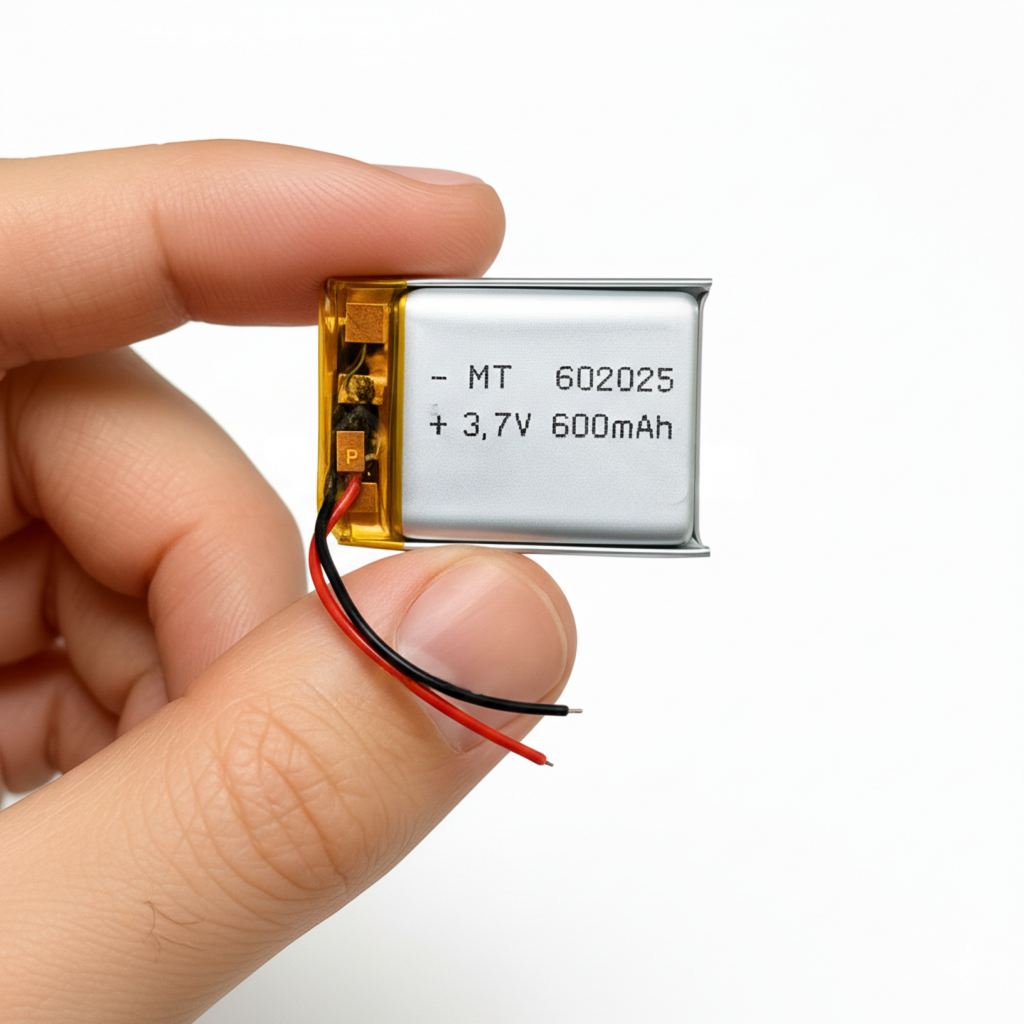 MT602025 3.7V 600mAh Li-Po ব্যাটারি একটি ছোট আকারের ও হালকা রিচার্জেবল লিথিয়াম পলিমার ব্যাটারি, যা কম পাওয়ার ও সীমিত জায়গার অ্যাপ্লিকেশনের জন্য বিশেষভাবে উপযোগী। এটি স্থির ভোল্টেজ ও নির্ভরযোগ্য পারফরম্যান্স প্রদান করে এবং ওয়্যারেবল ইলেকট্রনিক্স, ক্ষুদ্র IoT ডিভাইস, স্মার্ট সেন্সর, ব্লুটুথ মডিউল ও ছোট DIY প্রজেক্টে সহজে ব্যবহার করা যায়।