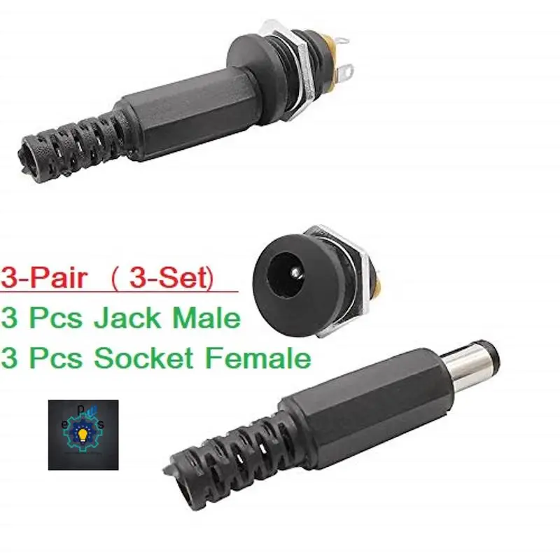 3Pair- 5V 12V 24V DC Jack Male & Panel Mount Socket Female DC Power Jack 2.1mm Plug Socket Power Supply For Led Strip CCTV Security Camera Cables Barrel Adapters