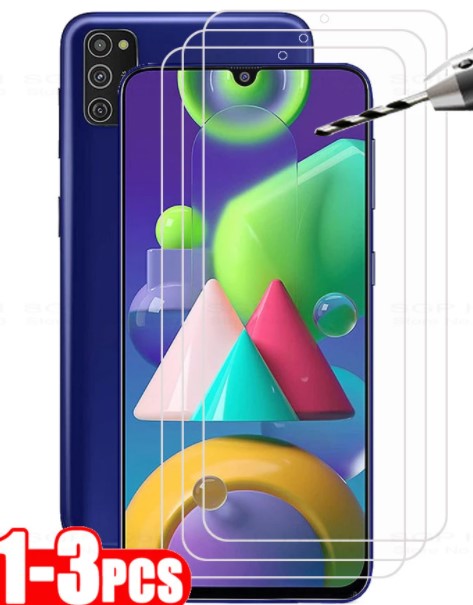 - 3Pcs Glass For Samsung Galaxy M21 Screen Protector Full Water Color Transparent Tempered Glass