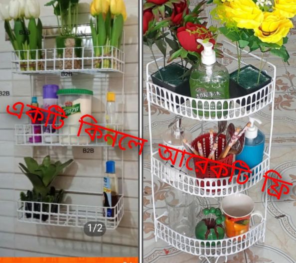 This 3 Tier Metal Storage Shelf is a must-have for any home looking to maximize storage space. With its wall-mounted design, it's perfect for small kitchens and bathrooms. The shelves are made of durable metal and can hold a variety of items, from toiletries to kitchen supplies. The Buy 1 Get 1 Free offer makes it an even better deal. The corner rack design allows for easy access to all shelves, while the hanging feature saves valuable floor space. This shelf is perfect for those looking to organize their home without sacrificing style.