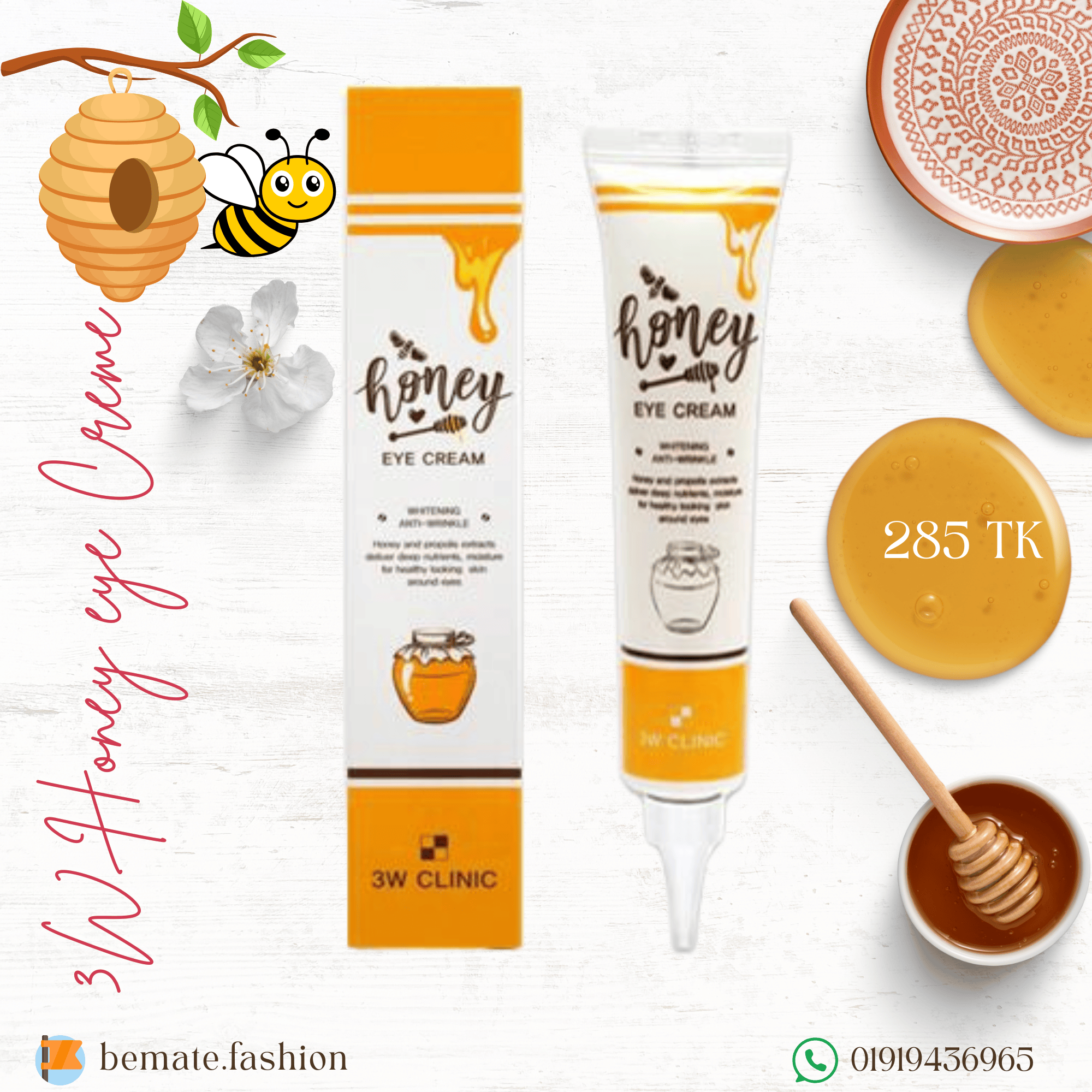 The 3W Clinic Honey Eye Cream 40ml is enriched with natural ingredients like honey and propolis extract, which are known for their moisturizing and anti-aging properties. This eye cream is designed to revitalize and firm the delicate skin around the eyes, smooth wrinkles, and provide a nourishing and whitening effect to enhance the overall health and appearance of the skin.