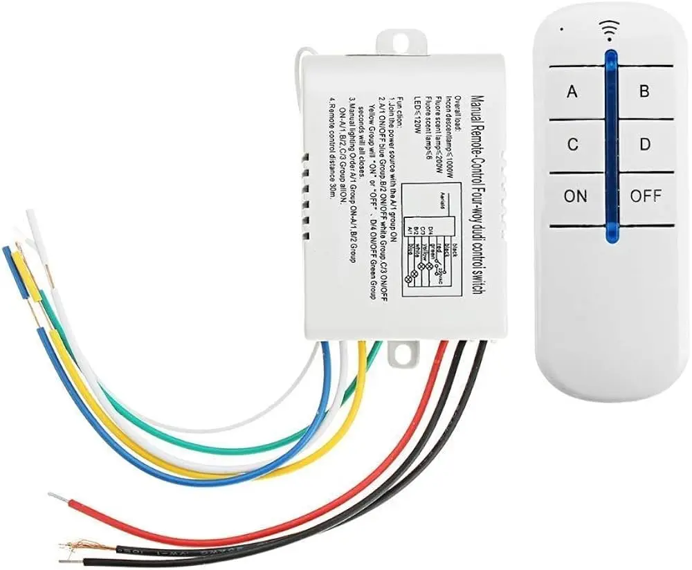 Features: - 4-way wireless radio frequency remote control device - Functions: A: ON, B: OFF, C: Delay Function, D: Anti-slide function - All ON/OFF function