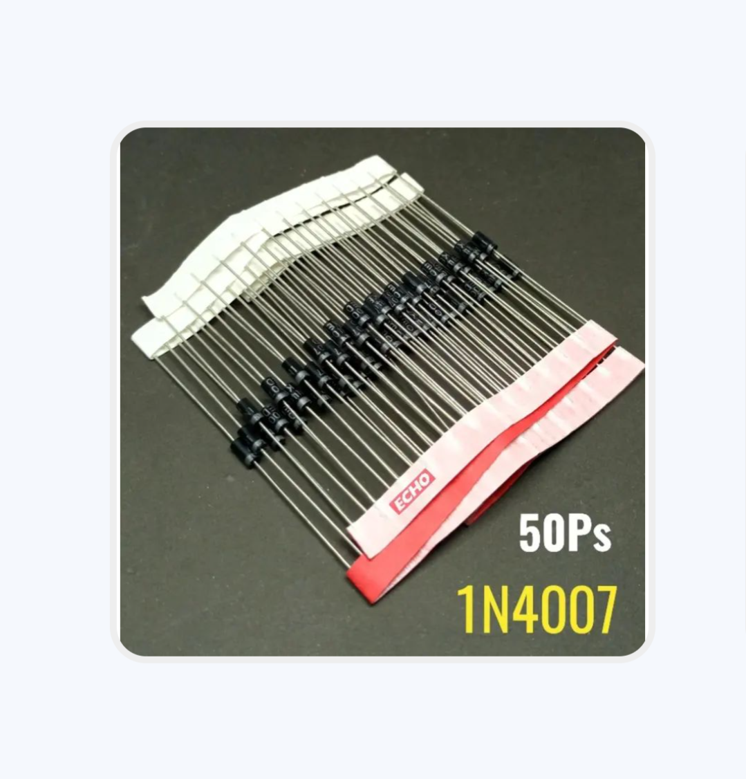 This is a pack of 50 Diode 1N4007 1000V 1A General Purpose Rectifier Diodes. These diodes are perfect for use in electrical circuitry and parts. They are designed to rectify AC voltage and convert it into DC voltage. With a maximum voltage rating of 1000V and a maximum current rating of 1A, these diodes are ideal for a wide range of applications. They are easy to install and use, making them a great choice for DIY enthusiasts and professionals alike. Whether you're working on a small project or a large-scale electrical installation, these diodes are sure to meet your needs.Customer Questions and answers :