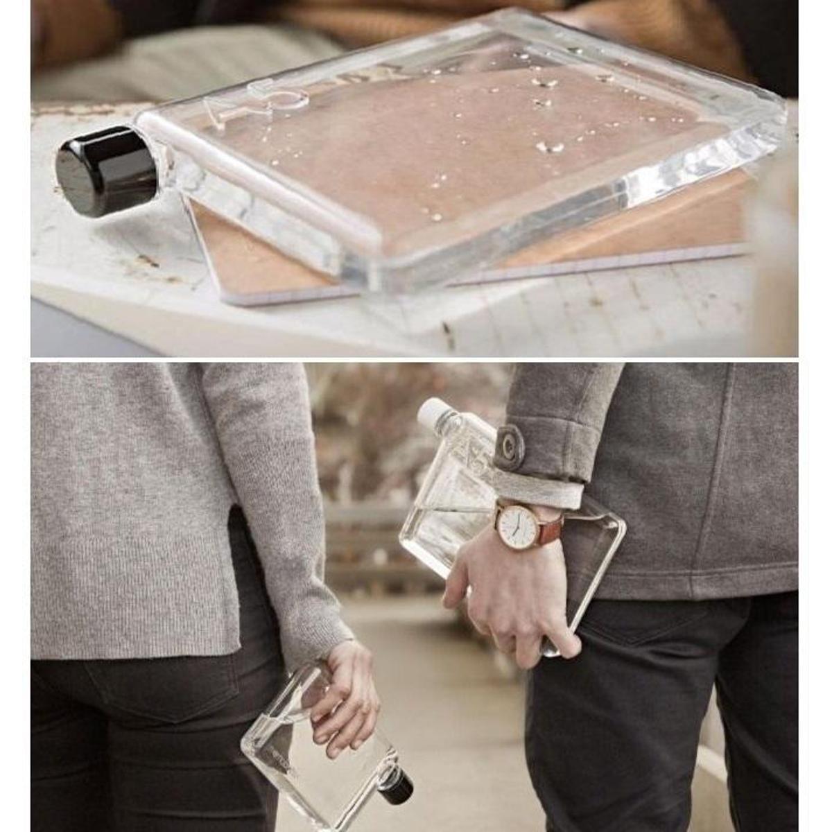 Multicolor Brand new concept of having a bottle designed as a note pad! Super unique .Original A5 and Flat sized reusable water bottles by memobottle. Memo bottle is a slim, reusable water container that fits todays technology lifestyle.A Flat Water Bottle That Easily Fits Into a Messenger Bag, Purse, or Briefcase.Resembling the shape of a piece of paper, the Memobottle™ fits where other bottles don’t. When full, the Memobottle™ takes on the dimensions of the A5 international paper size, This convenient and environmentally responsible water bottle offers a sleek new take on the traditional cylindrical water bottle design. No bigger than an iPad and flat instead of round. New Creative Direct Drinking A5 MEMO bottle.New Simple Portable A5 MEMO Notebook Bottle To Sport Plastic Drinking Water Bottle With Humanization Design..