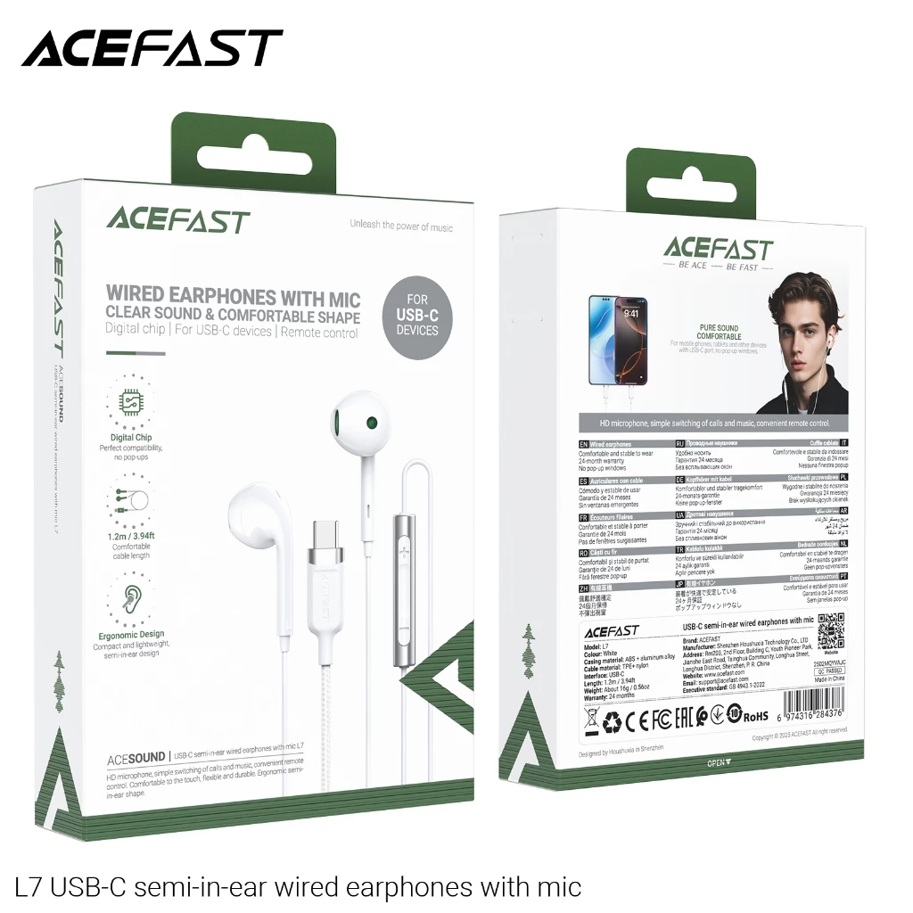 The ACEFAST L7 are USB-C wired earphones designed for modern Android phones and tablets. The semi in-ear fit keeps things light and comfortable, while the built-in anti-spray noise-reduction mic improves voice clarity on calls. A 1.2m flexible cable made from TPE + ABS + aluminum alloy + nylon resists pulls and tangles for everyday durability. At just about 16 g, they’re easy to carry and plug-and-play—no pop-up issues—making the L7 a simple, budget-friendly pick for commuting, classes, and online meetings in Bangladesh.