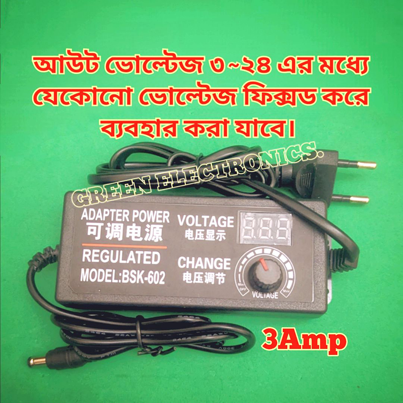 This Adjustable DC3v- 24V 3A Power Adapter with LED Voltmeter is a versatile power supply that can convert AC 110-240V to DC 3v, 9v, 12V, 24V, 9v, and 24V. With a power output of 72W, it is suitable for use with a variety of computer components, including power supply units. The LED voltmeter allows for easy monitoring of the voltage output, ensuring that your devices are receiving the correct amount of power. This power adapter is adjustable, making it a convenient and reliable choice for your power supply needs.১ বছরের ওয়ারেন্টি পেতে অবশ্যই আমাদের সাথে যোগাযোগ করবেন