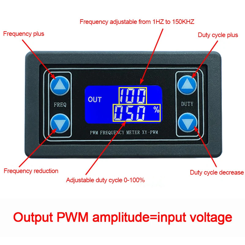 This module supports a wide frequency range and fully adjustable duty cycle, making it ideal for electronics testing, PWM control, motor speed regulation, LED dimming, microcontroller development, and laboratory experiments. Its wide operating voltage range ensures compatibility with various power sources and embedded systems.