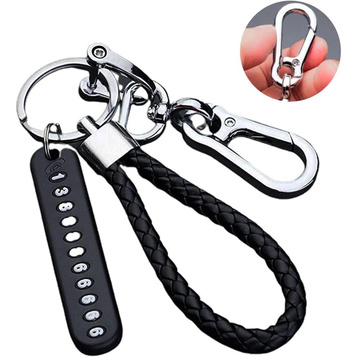 Made with premium braided leather, strong metal hooks, and durable split rings, this keychain is stylish, strong, and long-lasting. The carabiner hook design allows easy attachment to belts, bags, or backpacks, making it perfect for daily use.