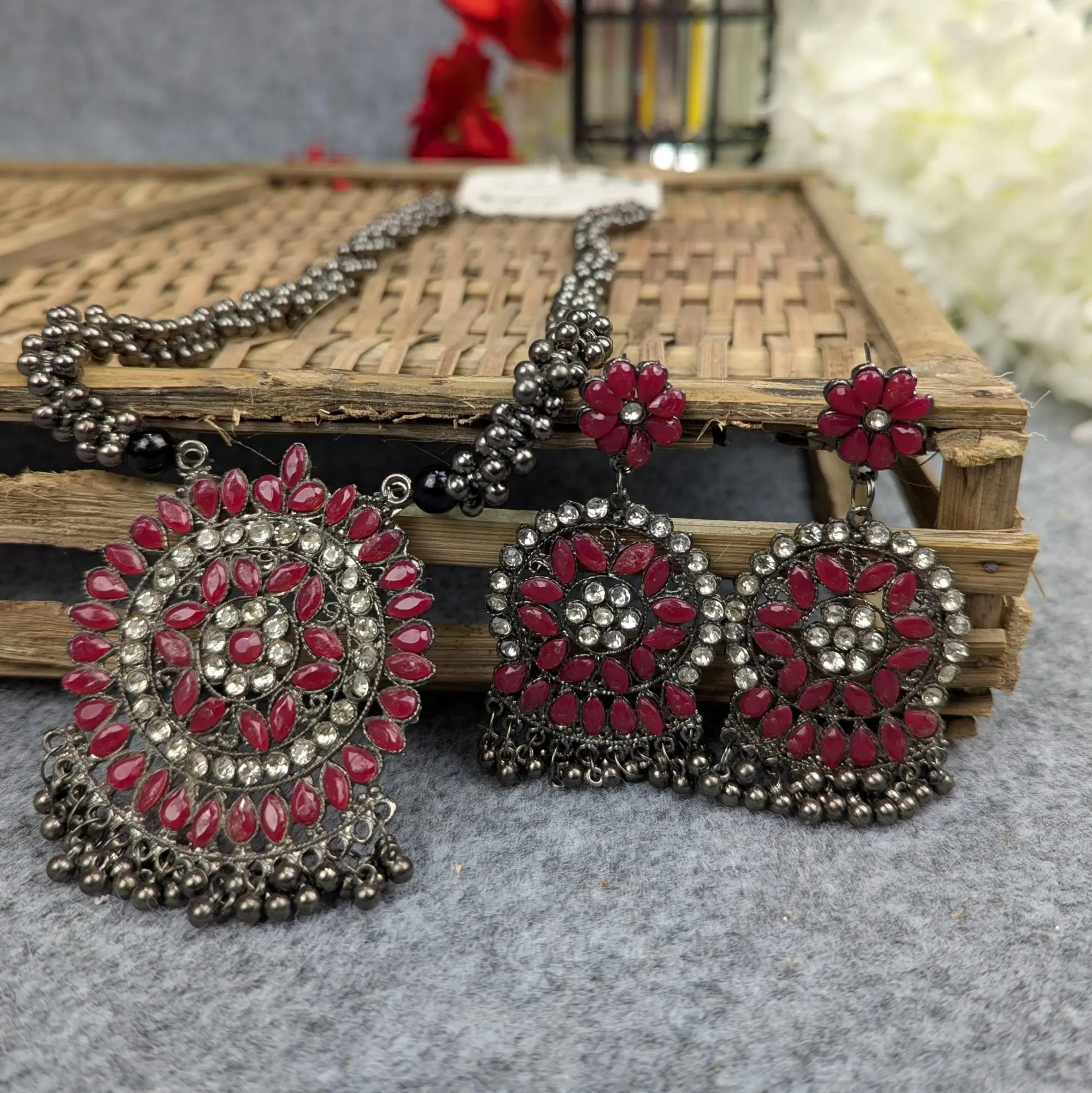 Antique Oxidized Necklace & Earrings Set – (Multiple Colors Available) ✨ আপনার লুককে দিন এক্সট্রা গ্ল্যামার!আমাদের Antique Oxidized Necklace & Earrings Set এসেছে দারুণ পাঁচটি রঙে – Red, Blue, Black, Pink & Contrast। সুন্দর স্টোন ওয়ার্ক এবং ইউনিক ডিজাইনের এই জুয়েলারি সেট আপনার যেকোনো ফ্যাশন লুককে করে তুলবে আরও আকর্ষণীয়।✔️ Set Includes: ১টি নেকলেস + ১ জোড়া কানের দুল✔️ Material: Premium Quality Oxidized Metal✔️ Design: Antique Finish with Stone Embellishment✔️ Occasion: বিয়ে, পার্টি, উৎসব ও স্পেশাল ইভেন্ট✔️ Lightweight & Comfortable – দীর্ঘ সময় সহজে পরিধানযোগ্য 🖌️ Available Colors:🔴 Red🔵 Blue⚫ Black🌸 Pink🎨 Contrast ⭐ হাইলাইটস:👑 ইউনিক Oxidized ফিনিশিং💃 Traditional & Western – উভয় আউটফিটের সাথে মানানসই🎁 গিফটিং এর জন্য পারফেক্ট✅ Premium Quality & Long-lasting Shine