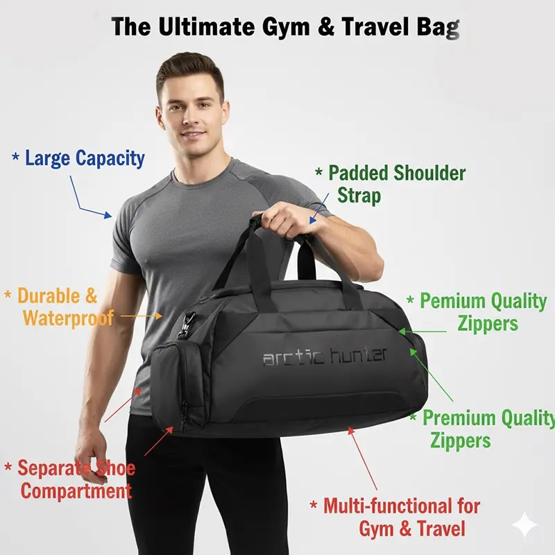 The Arctic Hunter 4-in-1 Travel Duffel Gym Sports Bag is a waterproof, durable, and versatile bag designed to keep your gear organized for the gym, travel, and daily use. With multiple compartments and a sleek design, it’s the perfect all-in-one solution for active lifestyles