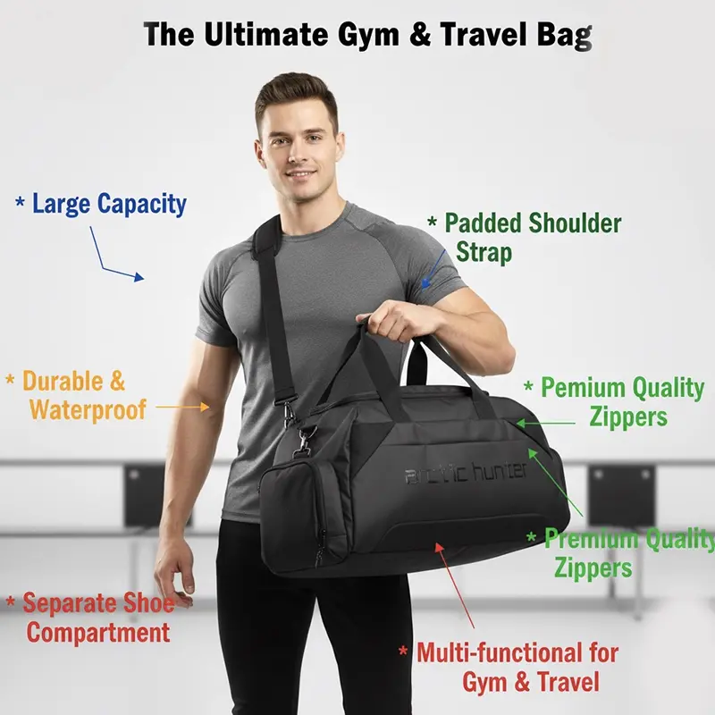 The Arctic Hunter 4-in-1 Waterproof Travel Duffel Gym Sports Bag is built for those who never slow down. Crafted from premium water-resistant nylon, this durable and stylish bag combines functionality with modern design. Featuring multiple smart compartments—including a dedicated shoe pocket and spacious main chamber—it keeps all your essentials perfectly organized whether you’re hitting the gym, heading out for a weekend trip, or tackling your daily routine. Lightweight, versatile, and built to last, it’s the ultimate companion for your active lifestyle.