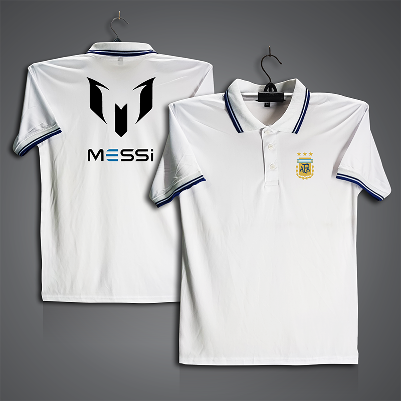 Argentina Messi Football Jersey For Men - Half Sleeve Collar Polo t shirt - Argentina Messi Jersey