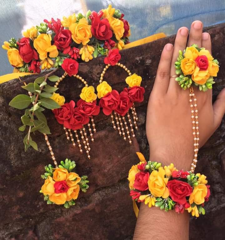 Artificial Flower Gorgeous Bridal Set-5 Piece set - Multicolor