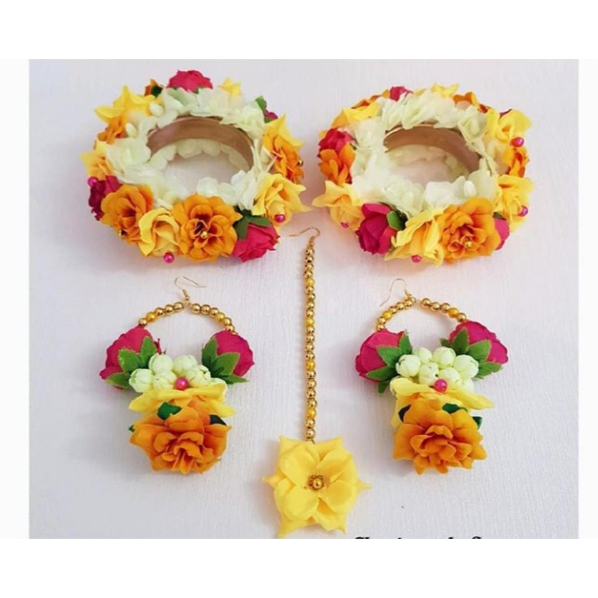 Artificial Flower Gorgeous Bridal Set-5 Piece set - Multicolor