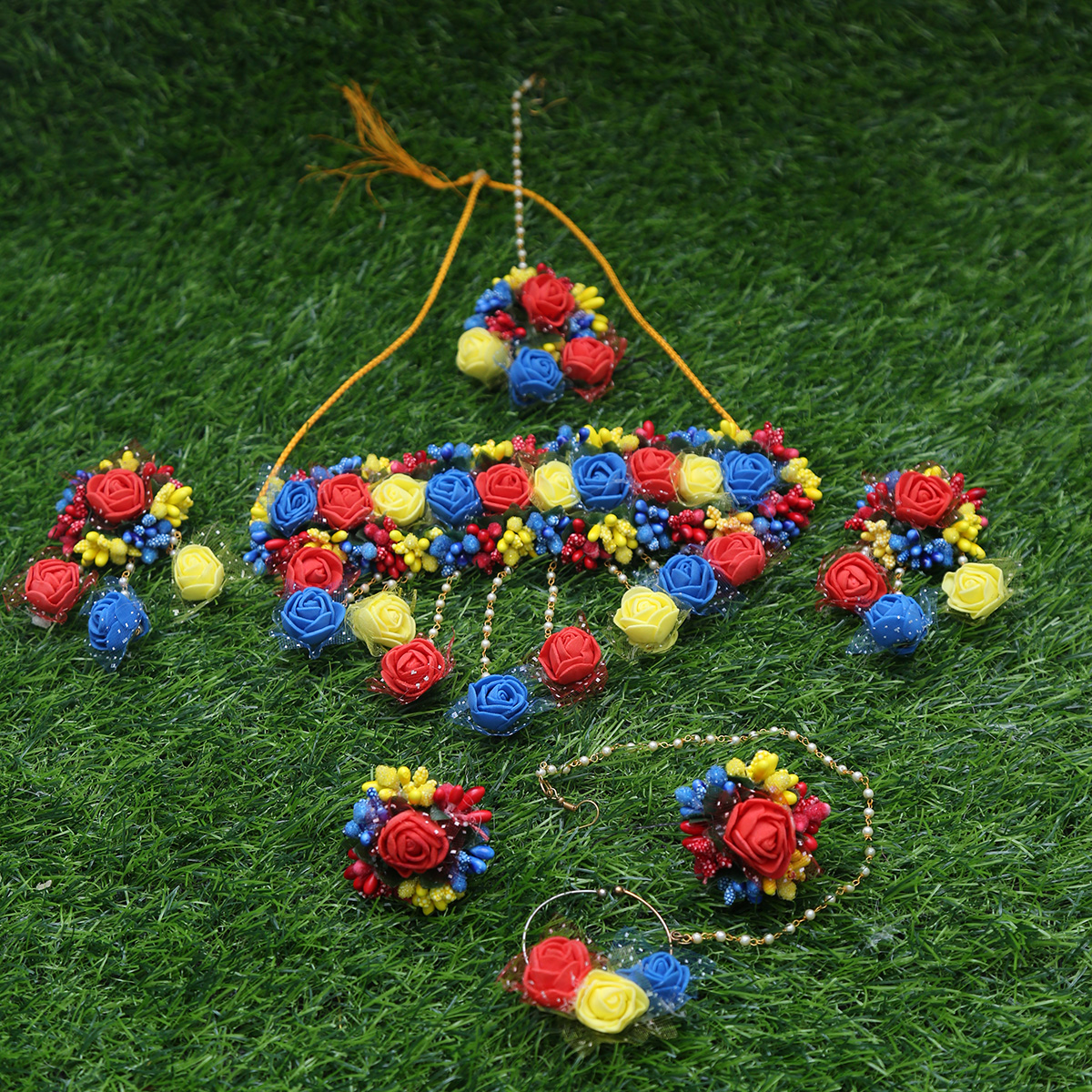 Artificial Flower Gorgeous Bridal Set-7 Piece set - Multicolor