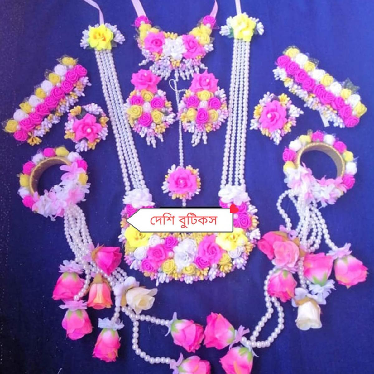 Artificial Flower Gorgeous Bridal Set-9 Piece set - Multicolor
