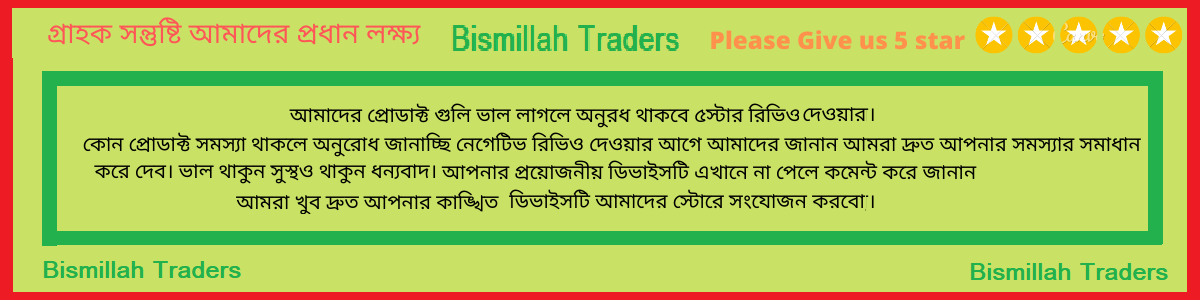 @ প্রতিদিন নতুনপণ্য যুক্ত হচ্ছে। আমাদের শপে-এ।নতুন পণ্যের আপডেট পেতে এখনই Followকরুন Bismillah Treaders।