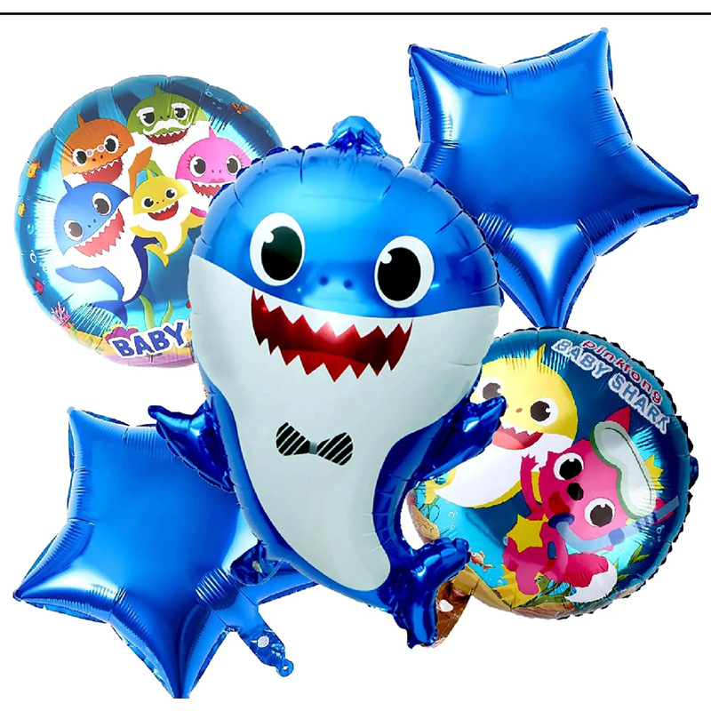 Baby Shark Cartoon Theme Foil Balloon 5 pc Set For Birthday Decoration
