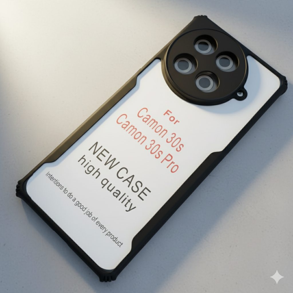 This back cover is designed for Tecno Camon 30s and comes in a transparent black color. It is a great accessory to protect your phone from scratches and minor damages. The cover is made of high-quality materials and fits perfectly on your phone. It is easy to install and remove, and provides full access to all buttons and ports. The transparent design allows you to showcase the original color of your phone while the black border adds a touch of elegance. This back cover is a must-have for anyone who wants to keep their Tecno Camon 30s safe and stylish.