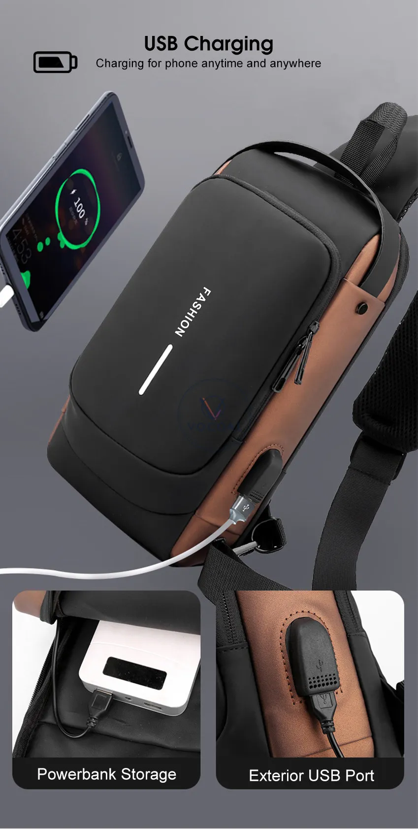 - 2. Easy To charge: This bag has a USB charging interface on the side, connect your portable power banks with your smart phone.