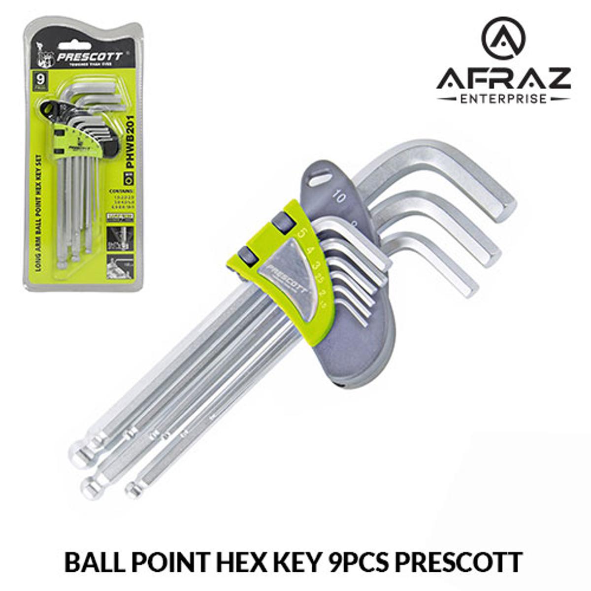 Ball Point Hex Key 9Pcs (1.5-10mm) PRESCOTT