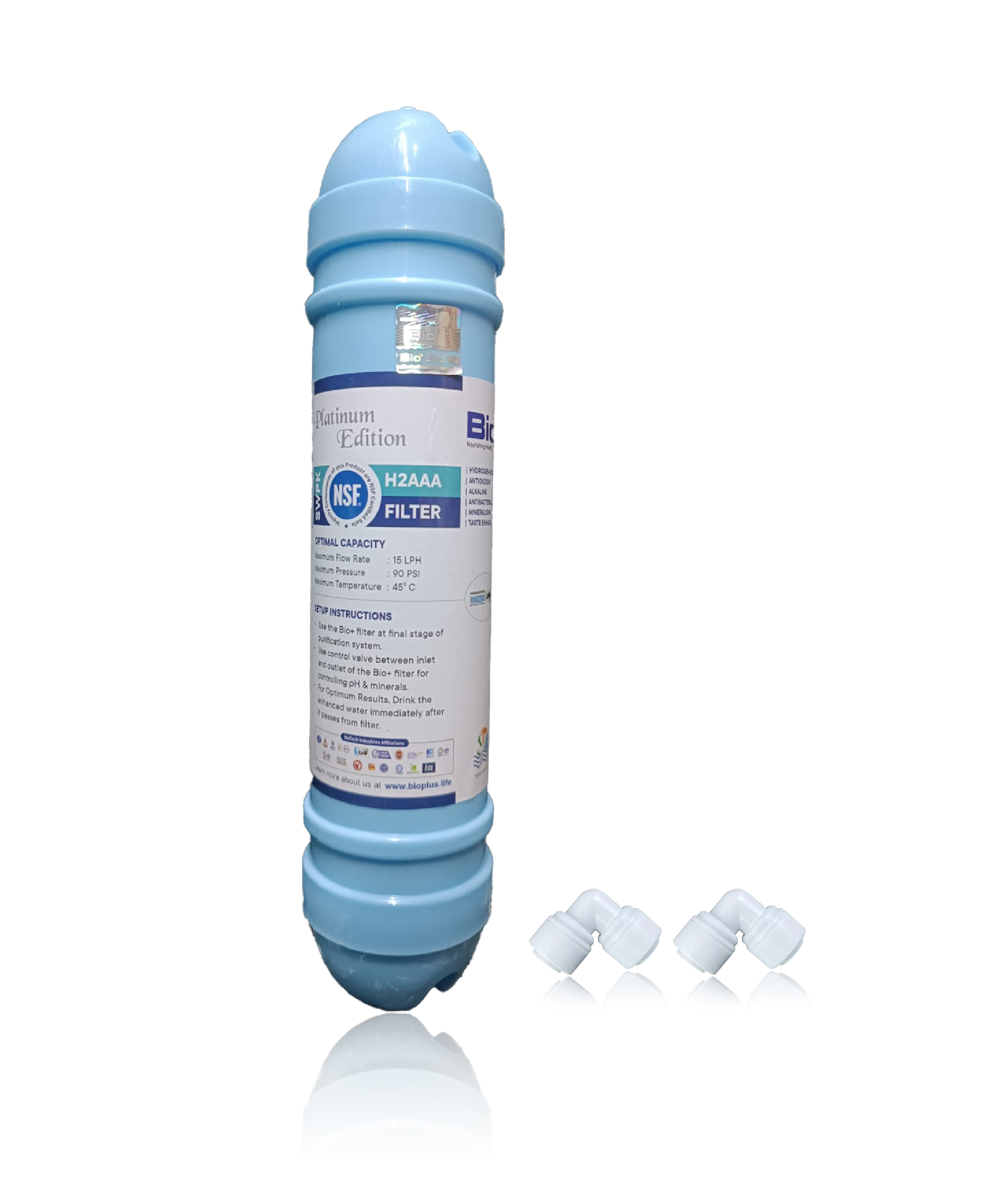Upgrade your water purification system with the Bio+ Platinum Edition H2AAA NSF Certified Filter Cartridge, engineered to deliver crystal-clear, great-tasting drinking water right at your tap. This high-performance inline filter is designed as the final polishing stage in any multi-stage purification setup, removing residual chlorine, odors, organic contaminants and bacteria while retaining healthy minerals. Its robust construction withstands up to 90 PSI pressure and temperatures as high as 45 °C, delivering a consistent 15 liters per hour flow rate—perfect for home kitchens, offices or small cafés. NSF certification guarantees rigorous third-party testing, so you can trust every drop you drink is purified to international safety standards. Easy to install and replace, the Bio+ Platinum Edition filter ensures optimal pH balance, enhanced alkalinity and a smooth mouthfeel. Drink confidently and enjoy the purest water, every single time.