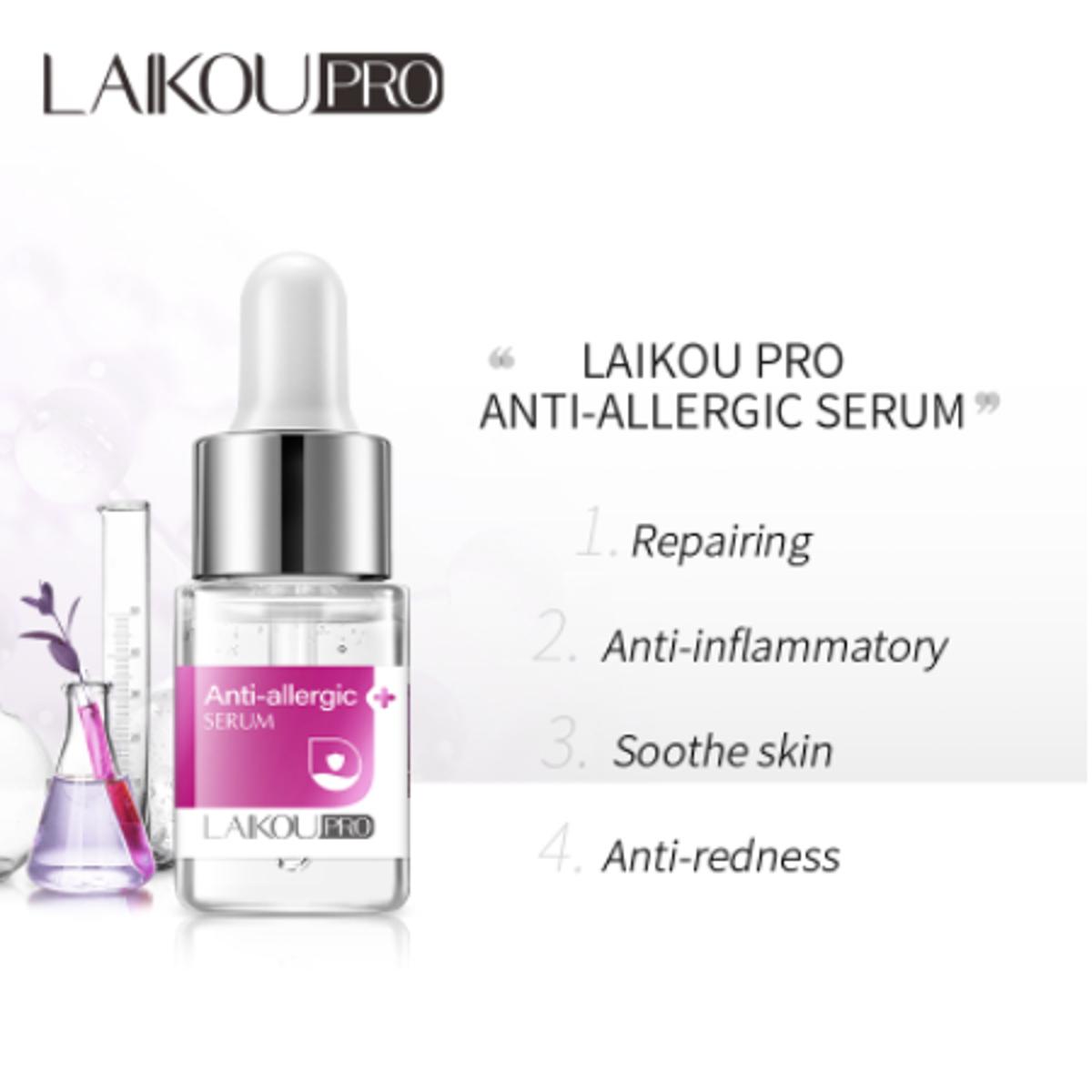 Laikou Anti Allergic Serum Enhance Skin Bottom Repairing Damage Moisturizing Sensitive Skin Care 12mlFeatures:Brand: LAIKOU ProNet weight: 12mlShelf life: 3 YearsSkin Type: Normal/Sensitive SkinEffects: Soothe skin, anti-inflammatory, anti-redness, moisturizing, repairing❤️❤️❤️Why choose us?LAIKOU PRO Anti-allergic Serum is rich in Magnolia Officinal is Bark Extract, Sophora Angustifolia Root Extract and other natural anti-sensitive factors. It can ease sensitive skin, reduce extemal stimulus and enhance the skin's anti-allergy abilities. It will make your skin refreshed smooth and allergy-free.Anti-allergic Serum1. Soothe skin2. Anti-inflammatory3. Anti-rednessCautions:1. In case of sensitive skin, please test the product on the inside of the arm first. If discomfort arises, please immediately stop using the product and seek the assistance of a dermatologist.2. If the product splashes into your eyes, flush them with fresh water immediately.3. Keep out reach of children.Package Includes: 1x 12ml LAIKOU Pro Anti-allergic Se