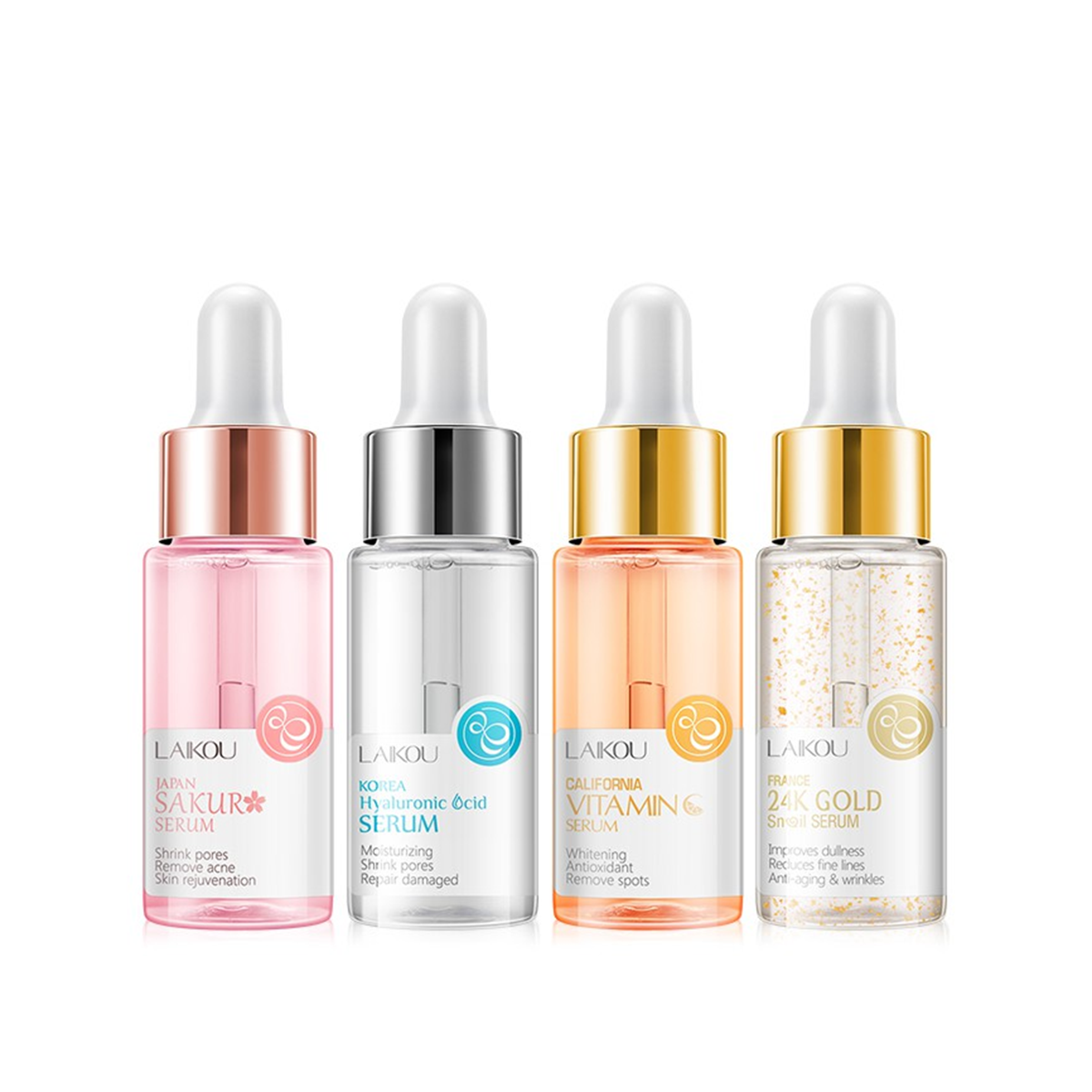 Laikou Japan Sakura/Hyaluronic Acid/California Vitamin C/France 24k Gold snail serum 4 PCS Combo Pack