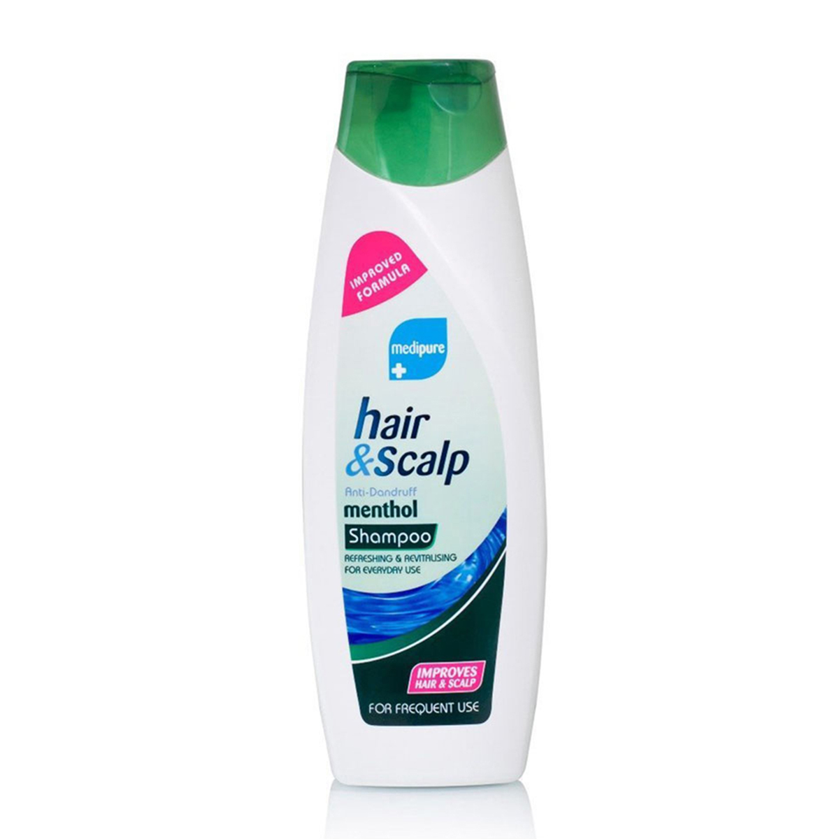 DESCRIPTIONImproved Formula Medipure Hair & Scalp Anti Dandruff Menthol ShampooSpecially Formulated For Problem ScalpsPrevents Itching And FlakingEffective Treatment For DandruffImproves Hair And ScalpRefreshing And Revitalising For Everyday UseQuantity: 400mlComes In A Plastic Bottle With A Flip Open Top Lid For Easy Access And Less Wastage