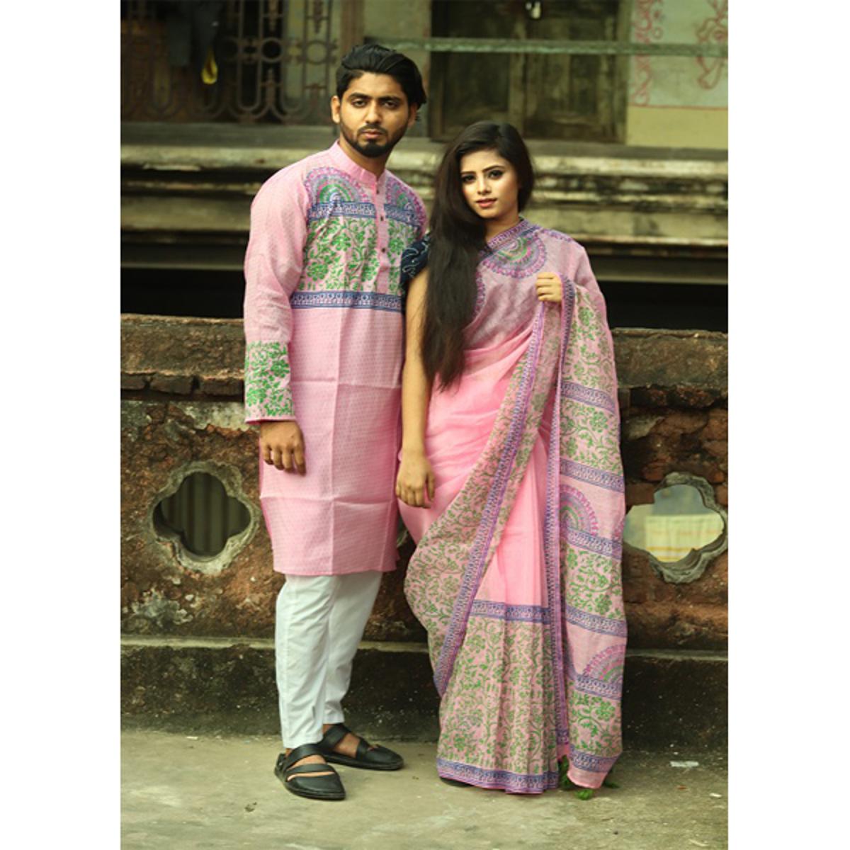 Product details of Cotton Shalwer Kameez and Dhupiyan panjabi For Combo Couple Dress