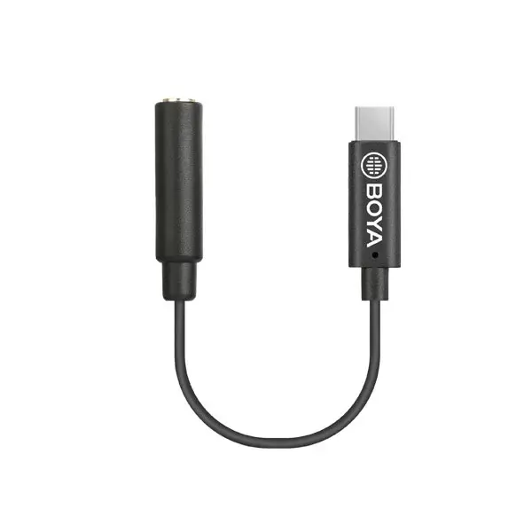 Specification TitleBoya Adapter Type-C Cable for AndroidBrandBoyaWarranty Period24 MonthsColourBlackConnection TypeAuxiliary, USB Type-CFeatures• BOYA BY-K4 is a 3.5mm TRS female to Type-C male adapter cable • Compact, portable, and easy to use • Cable length: 2.4 cm (approx.)Data Transfer RateNot ApplicableVoltageNot ApplicableMaterialNylonCompatible DevicesSmartphones (Android with Type-C)Charging SupportNoProduct Weight20 gCable TypeType-CUSB TypeAndroidFast ChargingNoData TransmissionFast data transferConductor MaterialFlexible, skin-friendly material