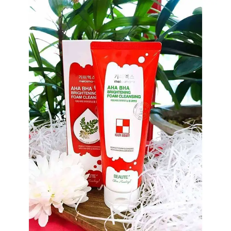 Beaute AHA BHA Brightening Foam Cleanser with AHA BHA and moringa leaf extract (20,000ppm) which is an effective antioxidant to brightening skin, and strengthen the skin's moisture barrier, maintaining a plumper, silky and firmer complexion. Made with skin-loving natural ingredients to help replenish and nourish your skin without irritation and perfect for all types of skin.