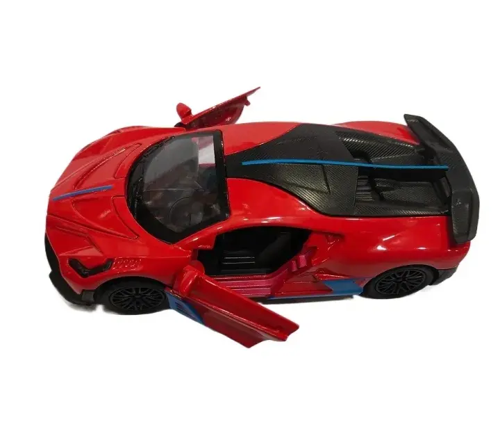 Bugatti Super Sports Car Feature: 4 Doors Open,Light on,Pull back,Sound Die-cast car - Red