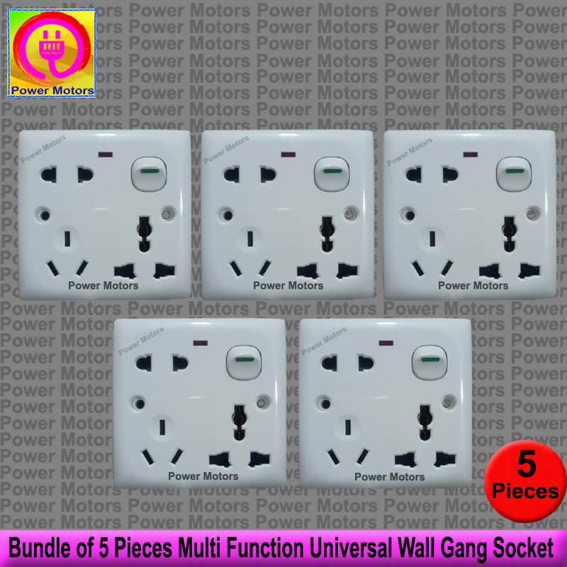 - Bundle of 5 Pieces 5 Pin Multi Function Universal Wall Gang Socket - Gang Universal Socket