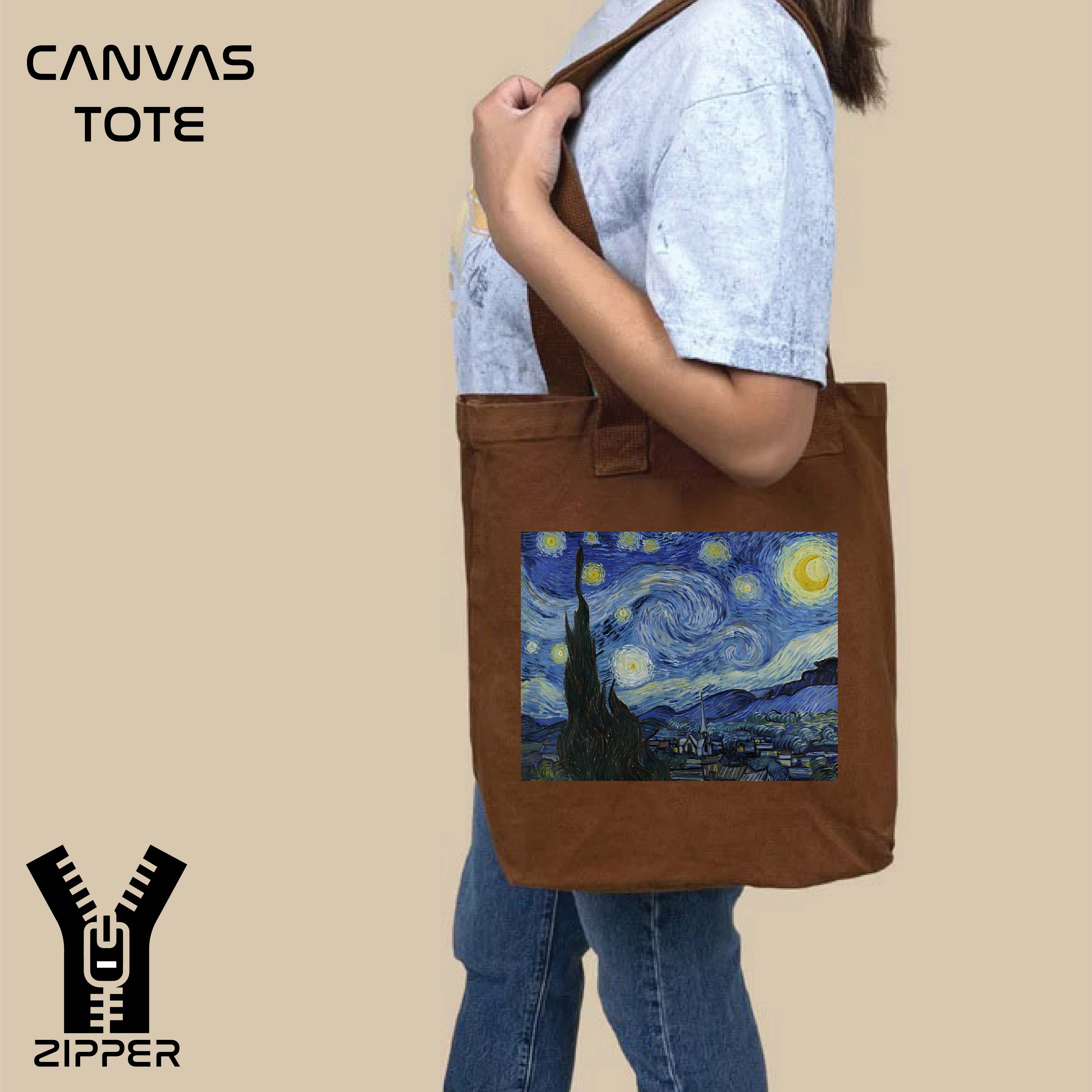 Canvas Tote Bag/Fashionable Top Handle Bag Brown Color with Zipper for girls For University/College/Trendy Fashionable Women