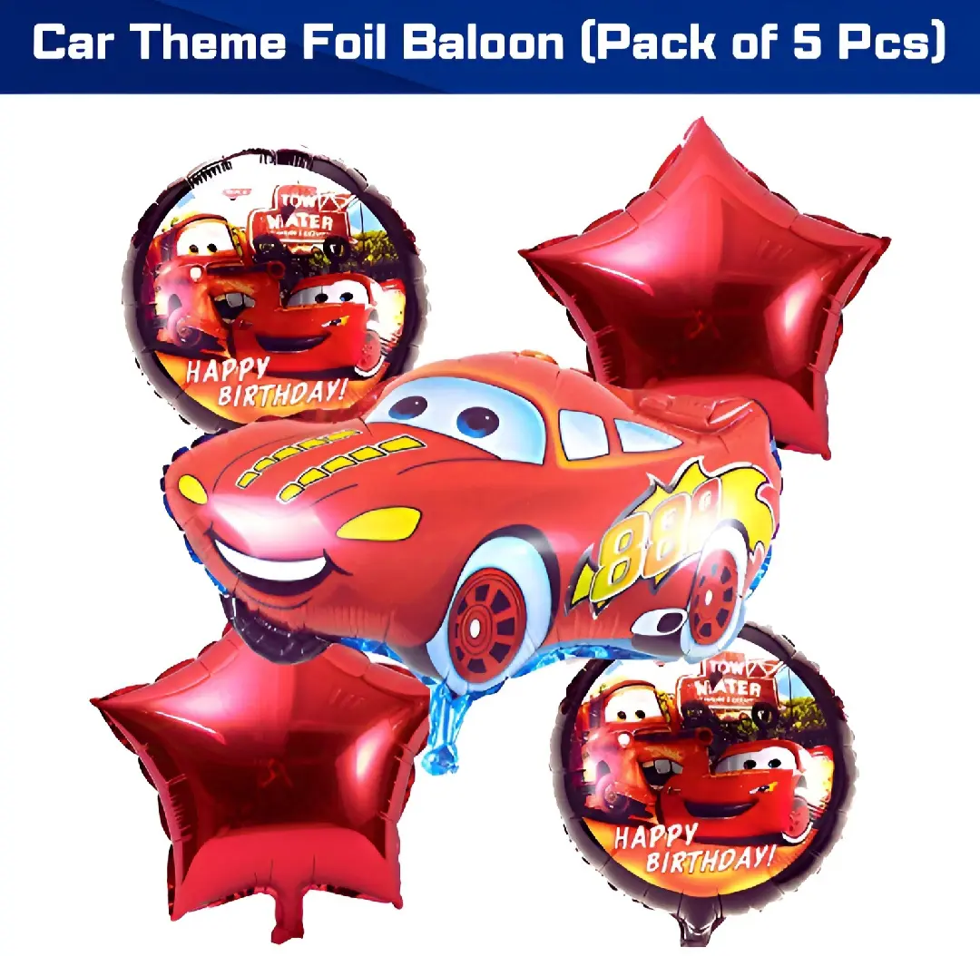Product details of Car Theme Foil Balloons for Birthday Decoration Set for Boys & Kids- (Pack of 05 Pcs) Material Type(s): Foil balloon Theme- Car Theme Foil Balloons Color: Red Country of Origin: China Size- Pack of 05 Pcs